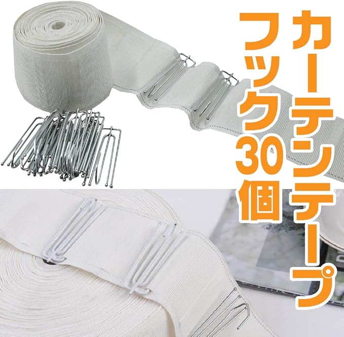 ZERONOWA カーテンテープ フック付き 手作り 初心者 (カーテンテープ6m/フック30個)