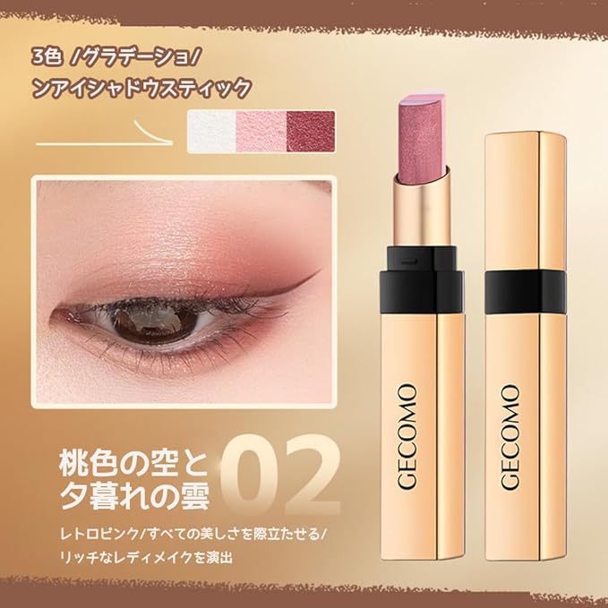 [GECOMO正規品] 三色アイシャドウスティック カラフルなクイックメイク輪郭を整えて明るくアイシャドウ スティック アイシャドーペンシル 時短メイク 多様な用途 塗りで簡単グラデーションアイシャドウ-02#レトロピンク | etshop