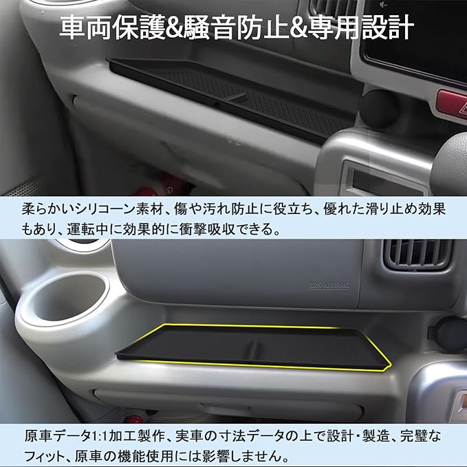 【走行時の衝撃や振動を吸収】 柔らかい滑り止めマットで、車の振動を吸収し、車をキズから守るだけでなく、運転中でポケットの小物の滑りによる雑音を軽減します。