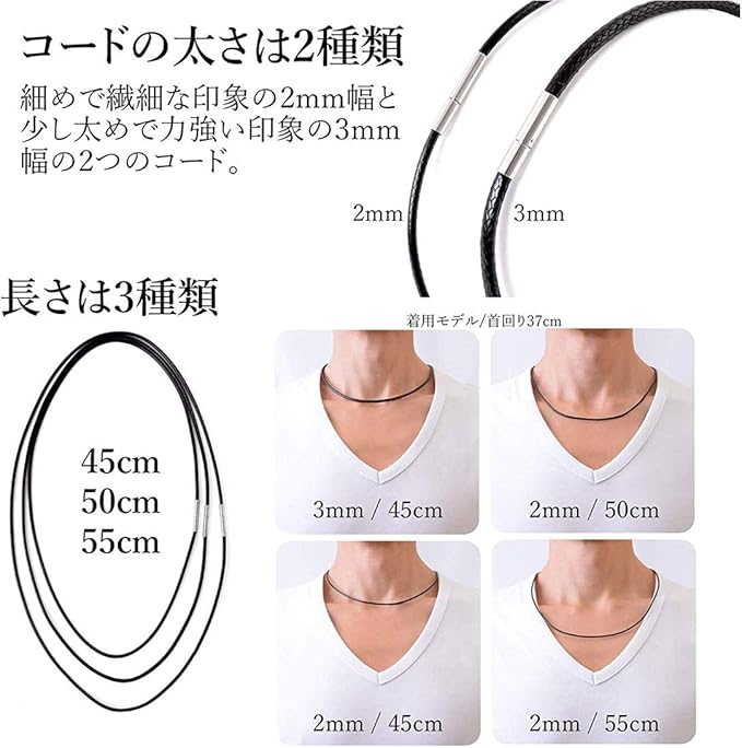 Necmネックレス メンズ ブラック 黒 紐ネックレス メンズチョーカー チェーン 45cm~55cm 幅2-3㎜ ピンク ワックスコード ステンレス 留め金 | etshop