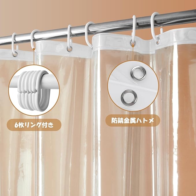 【透明なデザイン】シンプルなクリアシャワーカーテンなので、バスルームがいつも明るく見えます。
