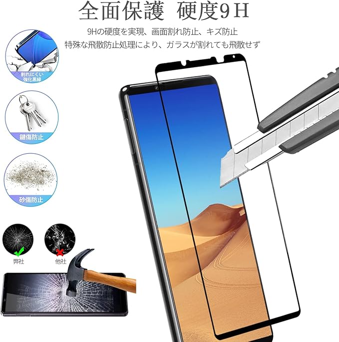 ☆【高品質素材製、硬度9H】一般的なガラス保護フィルムよりも耐久性に優れたハードコーティング技術により、9Hの硬度を実現。特殊な飛散防止処理により、ガラスが割れても飛散せず。DZHFUの液晶保護フィルム 一般的な製品に比べ3倍以上の保護力があり。