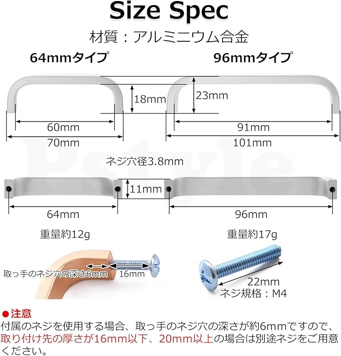 【仕様】 材質:アルミニウム合金。 サイズ:64mm、96mm。 カラー:シルバー、ブラック、ゴールド。