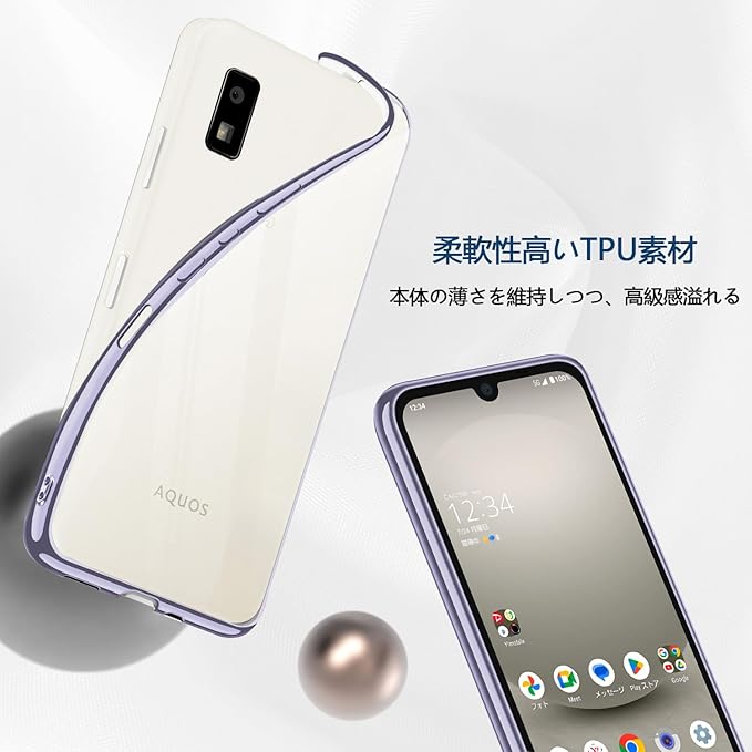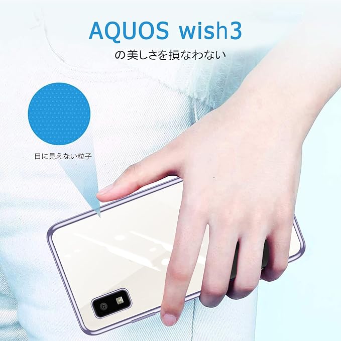 AQUOS wish3 ケース クリア A302SH カバー SH-53D スマホケース 透明 tpu 耐衝撃 ストラップホール スリム ソフト メッキ加工 SHARP アクオス wish3 ケース 薄紫 | etshop