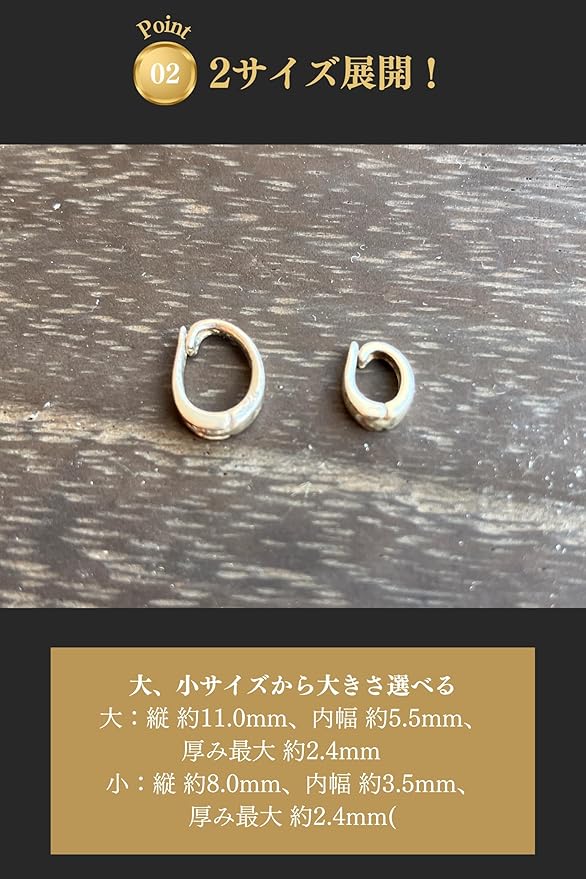 ✅【サイズ】大:縦 約11.0mm、内幅 約5.5mm、厚み最大 約2.4mm 小:縦 約8.0mm、内幅 約3.5mm、厚み最大 約2.4mm(多少の誤差はご了承下さい)