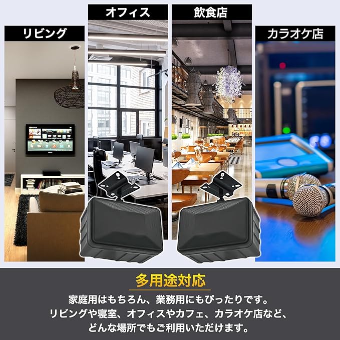 ✅【多用途対応】このスピーカーブラケットは、家庭用はもちろん、業務用にもぴったりです。リビングや寝室、オフィスやカフェ、カラオケ店など、どんな場所でもご利用いただけます。