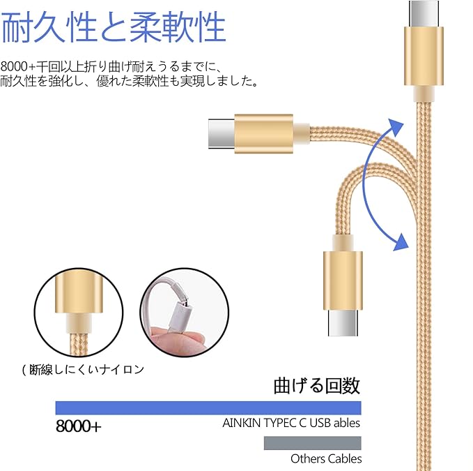 ❤ type c usbケーブル: Ailkinケーブルでいつでもどこでも急速充電や高速データ転送が可能です。USB2.0規格の480Mbps伝送スピードで本ケーブルの伝導性を最大限に実現、データ損失を最小限に抑えます。