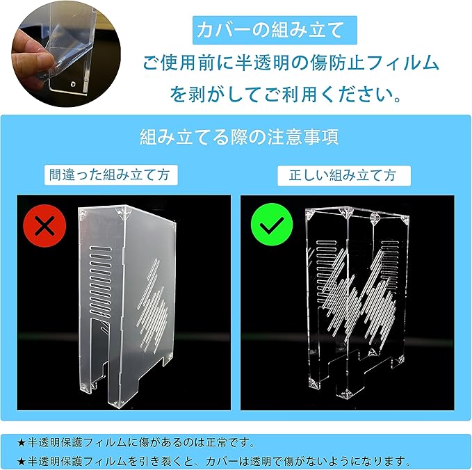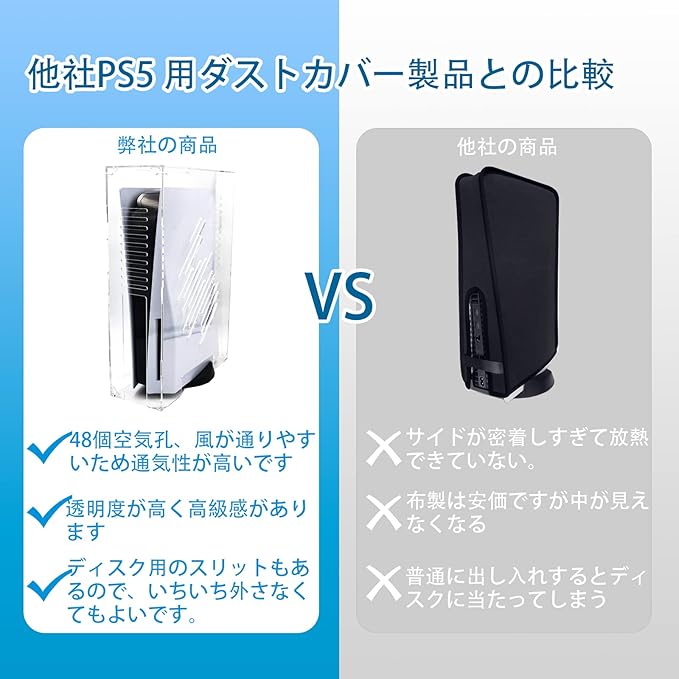 ⭐【サイズがピッタリ】アクリルカバー自体大きさには余裕ある為使い勝手は良いです。ディスク用のスリットやUSB端子用の穴もあるので、いちいち外さなくてもよいです。ps5スタンド使用していても特に問題なく使用できます!
