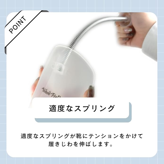 バネが適切なテンションをかけて靴の履きじわを伸ばします。