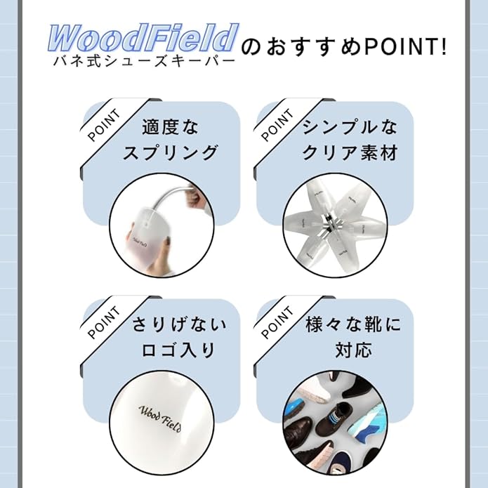 スニーカーからビジネスシューズまで様々な靴に使えるバネ式シューキーパー。
