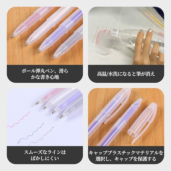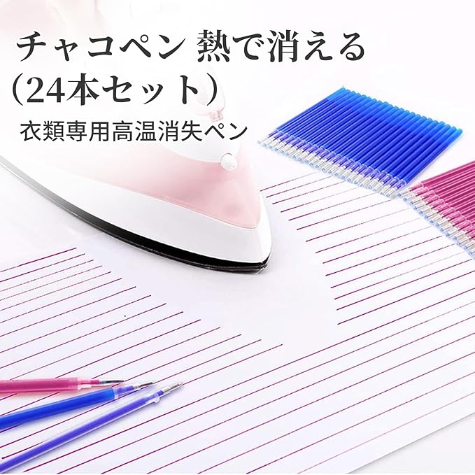 【高品質素材】:熱で消えるは軸素材:ABS樹脂。リフィルには特殊なインクが入っており、温度が約65℃に達すると筆跡が残らず消えます。アイロン等の熱をかければ色自体は消えますので、革や布地に傷を付ける心配がなく、裁縫用にばっちり!