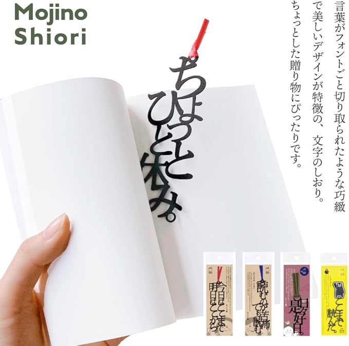 文字がそのまましおりになったこの商品。言葉がフォントごと切り取られたような巧緻で美しいデザインが特徴です。