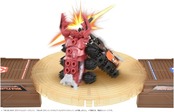 機体のチャージホイールでビクトリーチャージ!乾電池不要のフリクション動力で角や大顎を動かしながらパワフルにバトルをするぞ!本機は日本を代表するクワガタムシ「ノコギリクワガタ」です。湾曲した顎と新タイヤ(スピンドル)でスタンド・押し合いの両方に対応するバランスタイプのカブトボーグです。リアパーツ「トルネード」によりスタンディンバトルをサポートします。