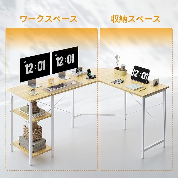 【広々としたl字デスク】ワークスペースと収納スペースを分けてご利用いただけます。ご自宅でもオフィスでも使用やすいです。