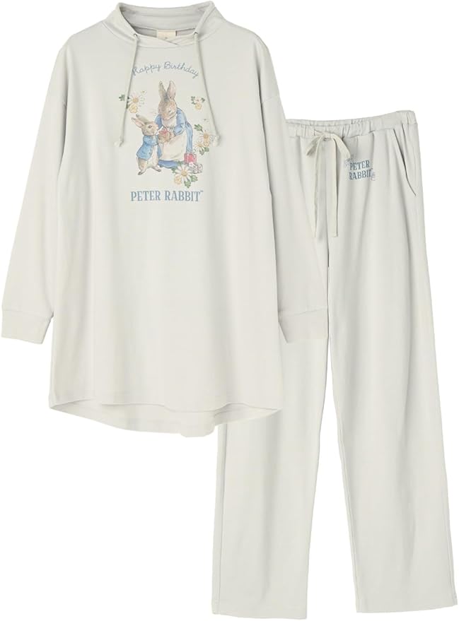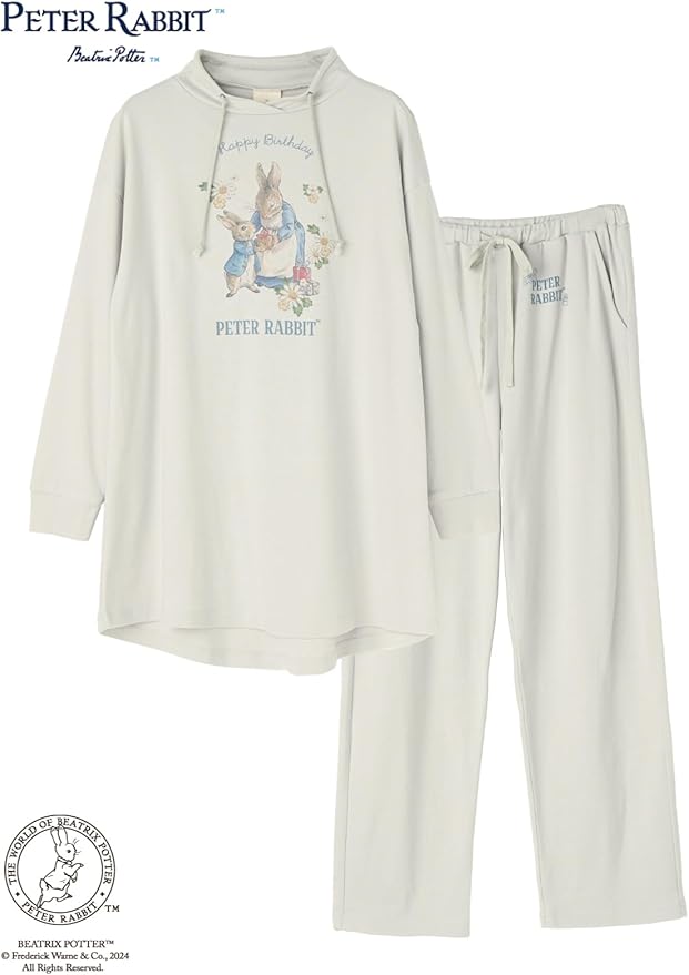 [repose time] ルームウェア レディース 長袖 上下 大きいサイズ 部屋着 パジャマ ゆったり パンツ 可愛い 【ピーターラビット™ギフト柄チュニック&パンツセット】 PETER RABBIT™ 正規品 綿混 吸水 | etshop