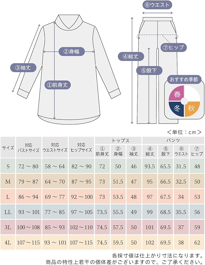 対応ヒップサイズ:S/82~90cm、M/87~95cm、L/92~100cm、LL/97~105cm、3L/102~110cm、4L/107~115cm