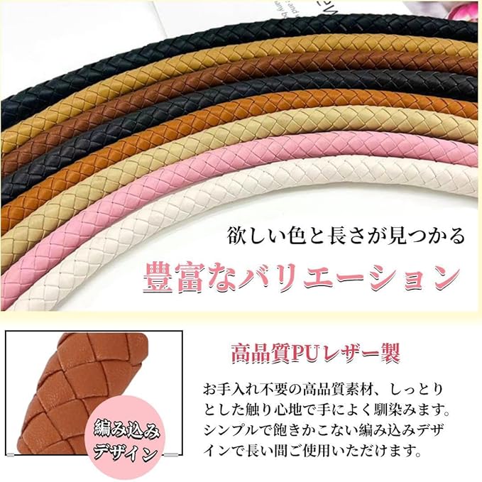 【商品詳細】素材:PUレザー。カラー:ブラック、ゴールド、ライトブラウン、ダークブラウン、ホワイト、ピック。サイズ:30cm、40cm、60cm。セット:2本。