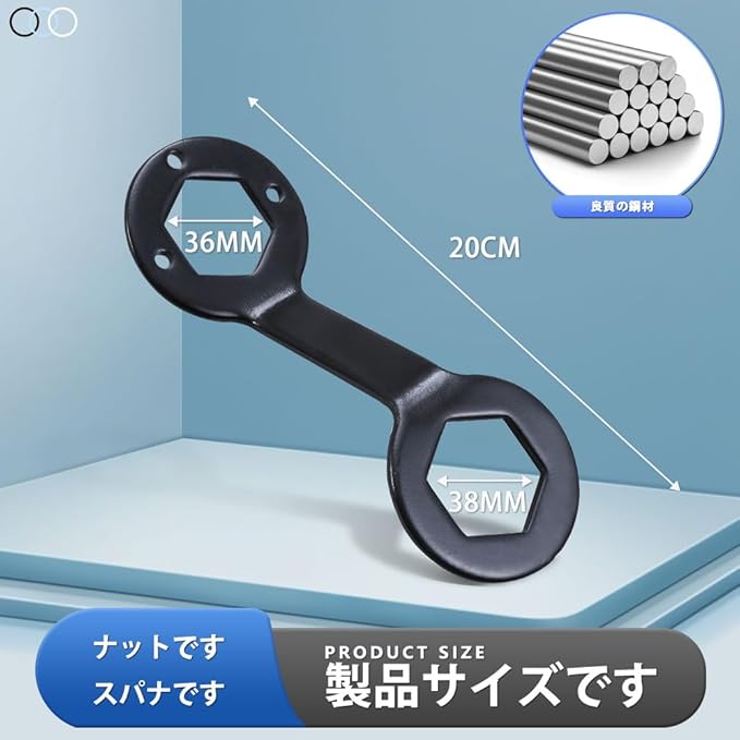 製品サイズ:長さ:200ミリメートルレンチ内径38/36ミリメートル材質:合金鋼色:黒
