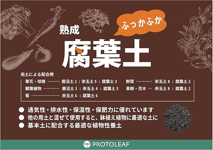 【商品特徴】国産の通気性・排水性・保水性に優れた熟成腐葉土です。