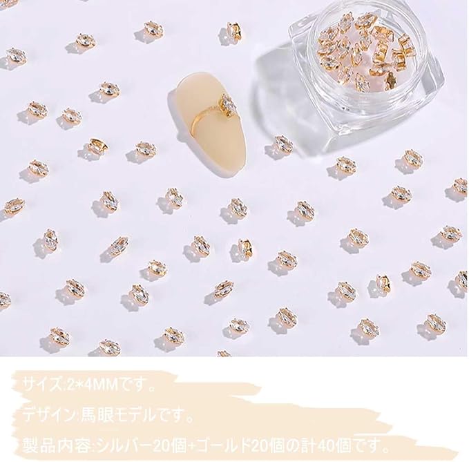 ネイル ストーン 40個セット ネイルパーツ ストーン ラインストーン ネイル用 輝くそして透明な ネイルパーツ ストーン 立体 小さい ラインストーン クリア キラキラ ネイルアート パーツ ジュエリー デコパーツ 手芸 ハンドメイド, ゴールド20+シルバー20(マーキス) | etshop