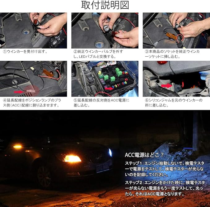 『2色切替』本製品は、ウインカーランプにスモールランプの役割を持たすことが出来ます。1つのLEDバルブがアンバーやホワイトに発光します。通常時:ホワイト(スモール点灯)。ウィンカーON: ホワイトが消灯し、アンバーが点灯する。ウィンカーOFF: アンバーが消灯し、ホワイトに戻ります。