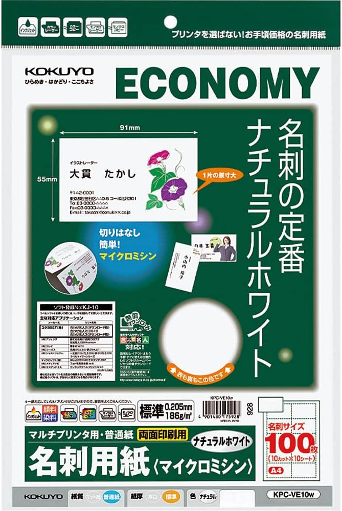 色や価格を重視する人のための、お得なエコノミータイプの名刺用紙