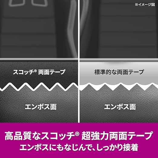 耐熱性のある高密度ポリエチレンフォーム基材の採用で、夏場の暑い車内でもしっかりと接着