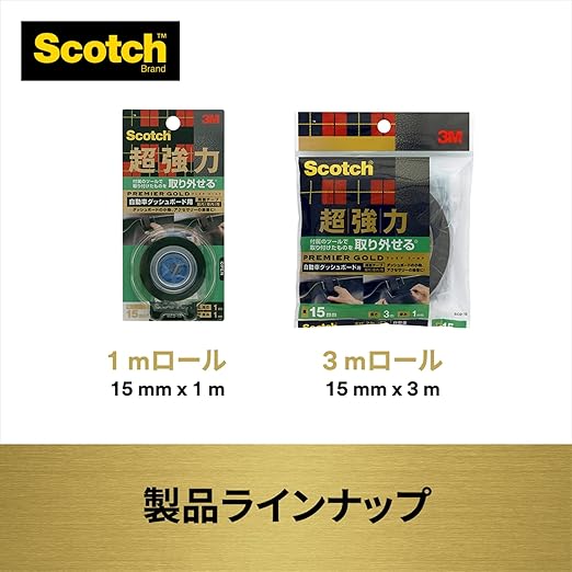 3M スコッチ 取り外せる 超強力両面テープ プレミアゴールド 自動車ダッシュボード用 15mmX3m SCD-15