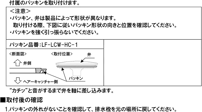 適合商品品番:ヘアーキャッチャー付排水栓LF-LCW-HC、LF-AR-HC専用