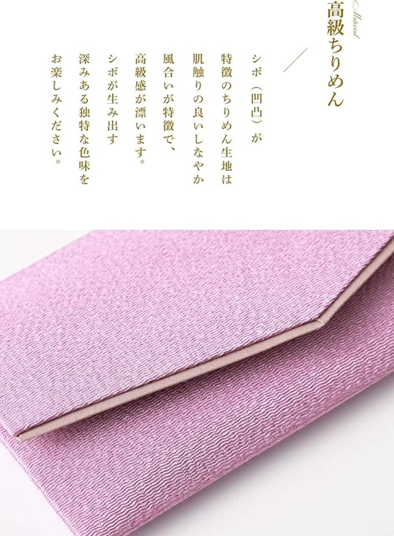 【厳かな場に相応しい上質素材】生地には、しなやかな風合いと美しいシボ(凹凸)が魅力の高級ちりめんを採用。品格漂う素材感が、厳粛な場にふさわしい佇まいを演出します。