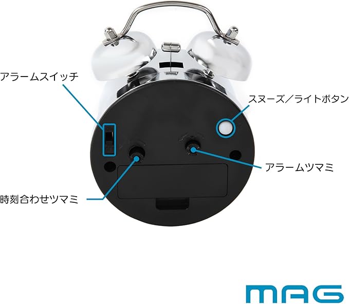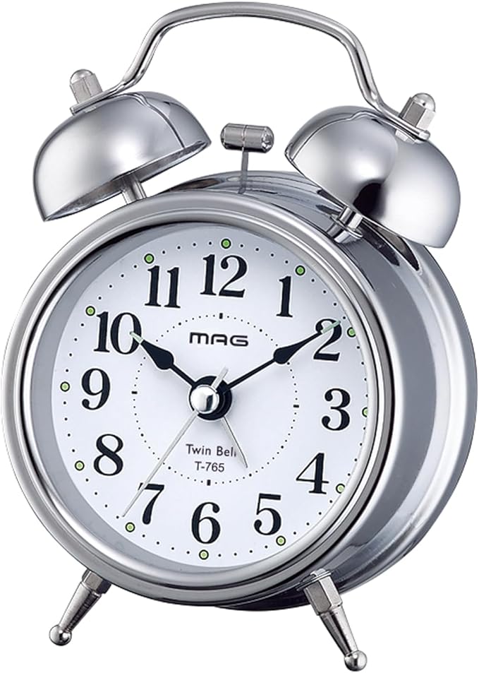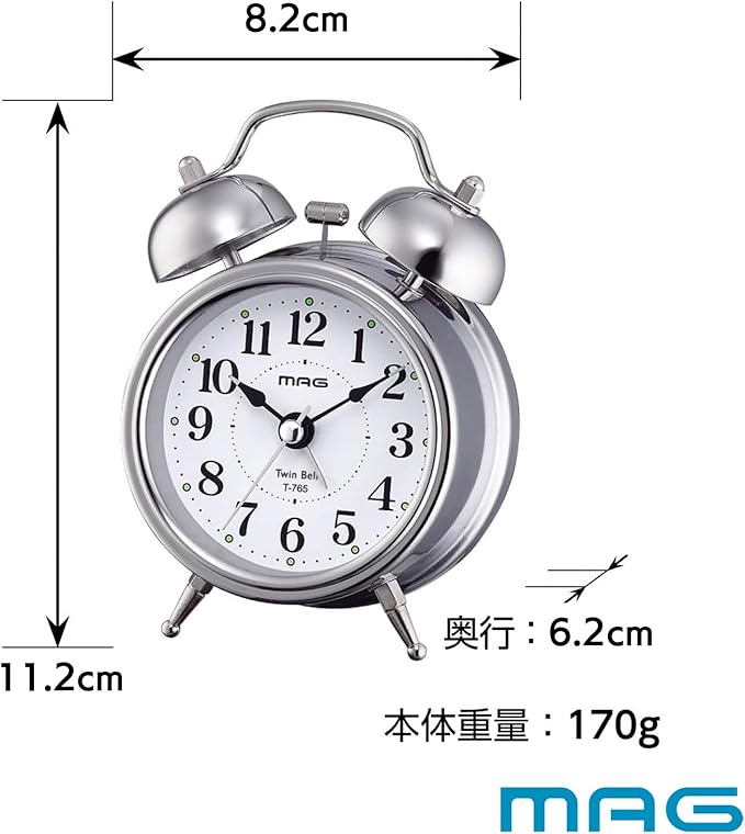 MAG(マグ) 目覚まし時計 置き時計 小型 小さい かわいい ツインベル アナログ 静音 連続秒針 ベル音 アラーム スヌーズ ライト シルバー ベルズミニDX T-765 S-Z ノア精密 | etshop