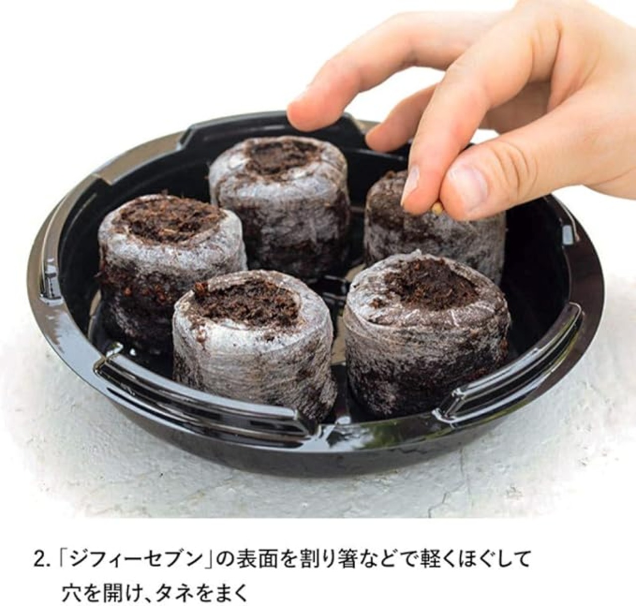 付属のジフィーセブンにタネをまいて、芽が出たらお好きな場所にそのまま植え付けてください。別売りのジフィーセブン(42mm)を購入すれば容器は繰り返しお使いいただけます。付属の活力剤はお好きな場所に植え付けた後にお使いください。