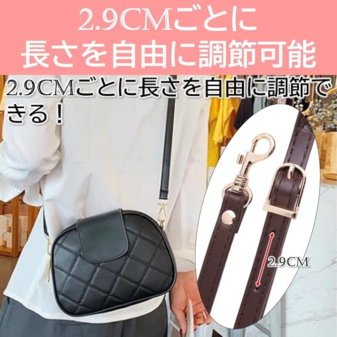 約1.1cm幅の合皮素材(PUレザー)のショルダーストラップ、3本セット。肩に掛けても重くない軽量な70gで長時間のご使用にもおすすめです。