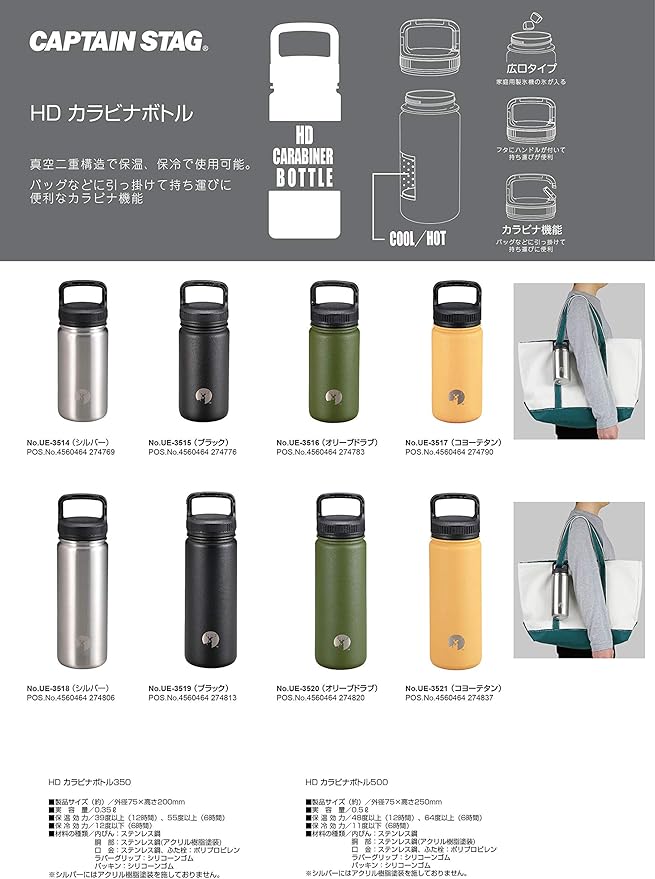 限定商品限定商品 スポーツボトル 水筒 直飲み ダブルステンレスボトル 真空断熱 保温 保冷 HDカラビナボトル 350ml オリーブドラブ UE-3516 製品サイズ:(約)外径75 高さ200mm | etshop
