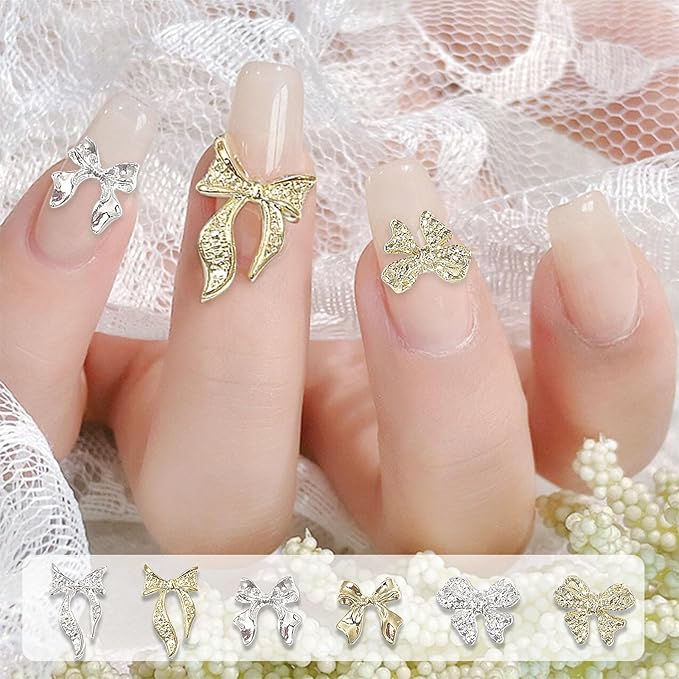 【絶妙なデザイン】ネイルパーツには、さまざまなスタイルのリボンがあり、さまざまなニーズを満たすことができます。 シルバーとゴールドはとても質感があり、その装飾が指元に魅力を与え、オーラを強めてくれます。