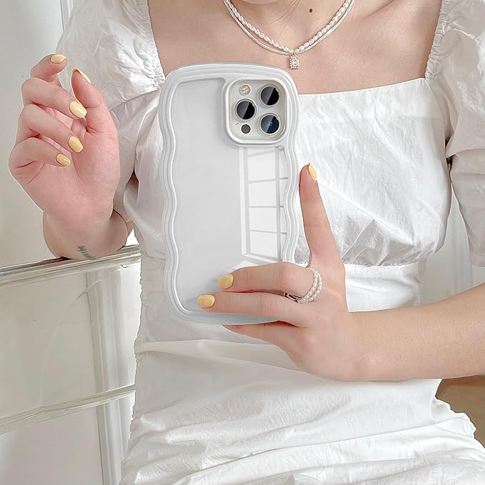 UEEBAI 対応 iPhone 15 Pro 用の ケース ソフト TPU カバー 可愛い おしゃれケース 透明 ウェーブ デザイン スマホケース ワイヤレス充電対応 軽量 薄型 耐衝撃 人気 波型 バンパー スマホケース - ホワイト | etshop