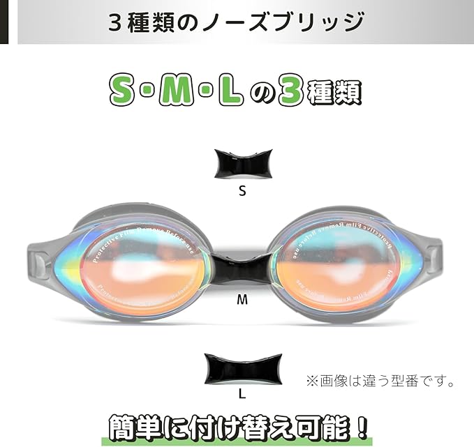 ●簡単なサイズ調整: ノーズブリッジはSMLの3種類から簡単に付け替え可能、ベルトを引っ張るだけで素早くサイズ調整!