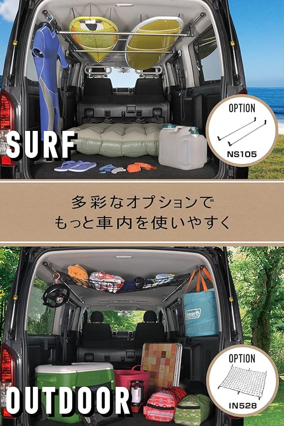 ●対応オプションも多く、車中泊やキャンプ、サーフィン、スキー・スノーボードをする方にオススメです。