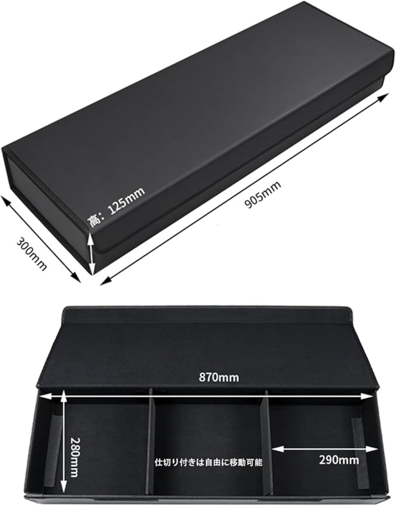 【自由に調整できる内部仕切り】 ボックス内部の仕切りは自由に位置調整が可能で、ペットボトル、ティッシュ、傘などを用途に応じてスッキリと収納。収納力も抜群です。「サイズ:約90.5 30 12.5cm」