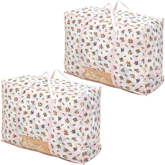 【商品仕様】:サイズ/約幅70 奥行30 高さ50cm(持ち手除く)、カラー/ホワイト、柄/小花柄、内容/2枚、収納目安(袋1枚あたり)/シングルサイズもしくはダブルサイズの羽毛布団1枚、材質/ポリプロピレン・ポリエチレン