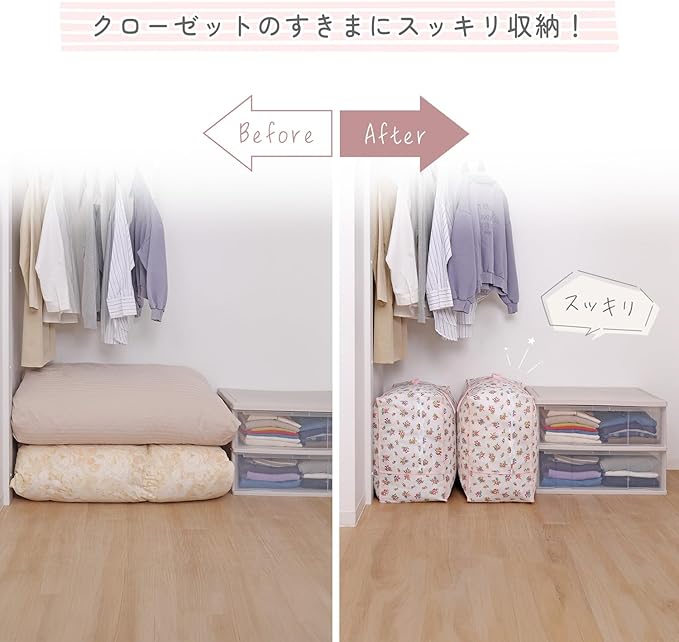 通気性が良くホコリを通しにくい生地のため、衣類や寝具の収納に適しています。