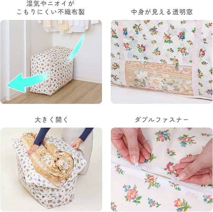 【通気性に優れた不織布製】:通気性の良い不織布でかさばる羽毛布団をホコリから守りスッキリ保管。