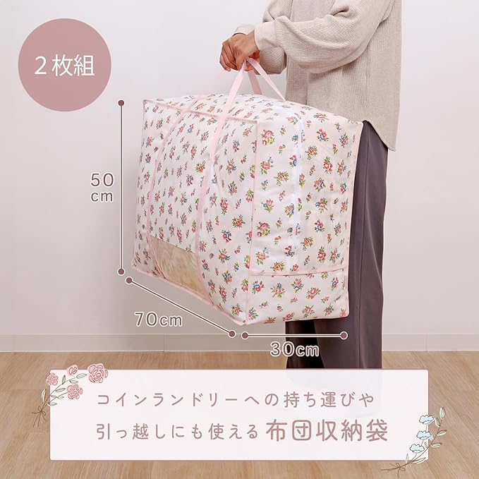 商品名:羽毛布団保存袋 持ち手付 プチローズ 2枚組