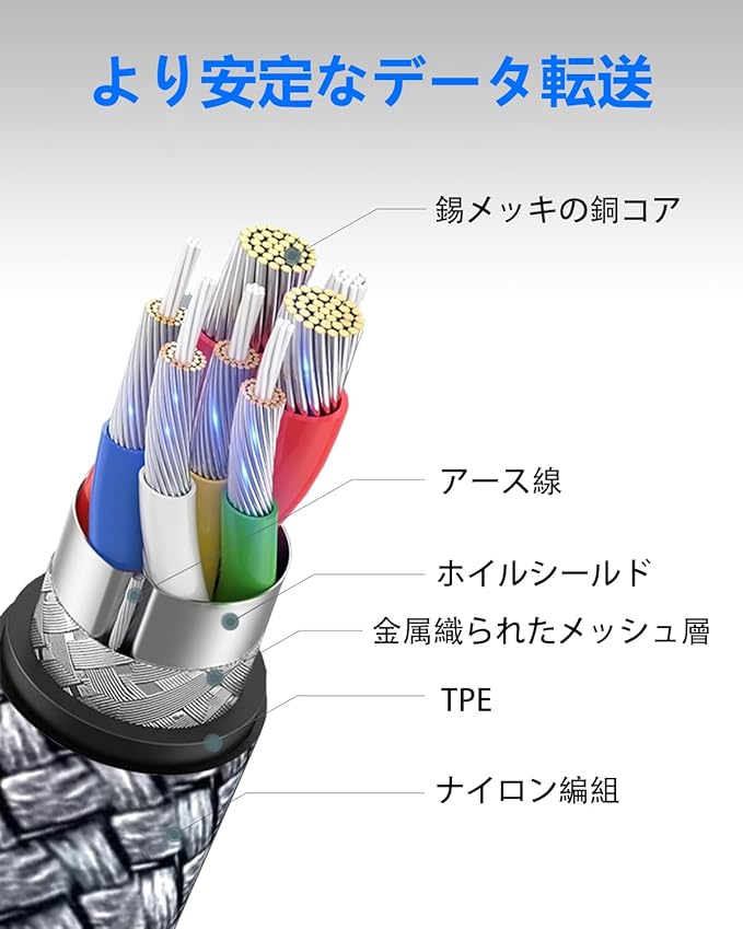 ✅【高耐久性ナイロン編み】高品質ナイロンによるUSBコードの柔軟性が良くて耐久性も抜群です。このusbケーブル a-aタイプは10,000回以上の折り曲げテストでも断線しません。長年に経ってもケーブルの曲げ損傷が防止され、耐久性を強くなります。