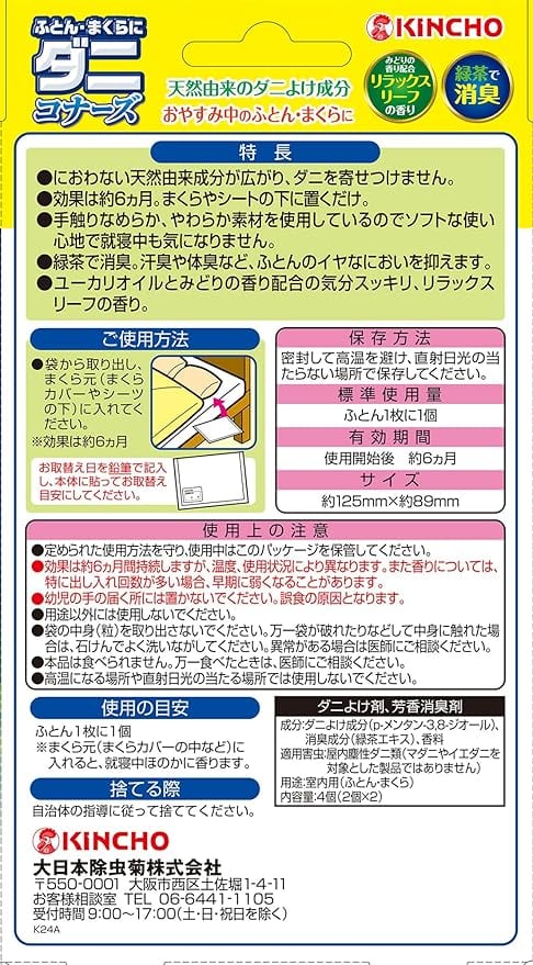 ふとん・まくらの下に置くだけの寝具用ダニよけ。殺虫成分は不使用。