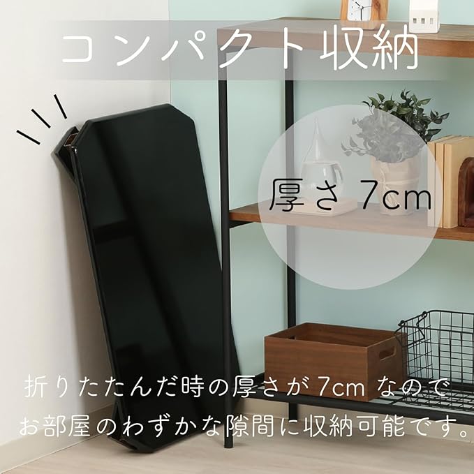 このテーブルは8㎏までの荷重に耐えます。重い荷物を置かないでください。また、使わないときは折りたたんで収納してください。
