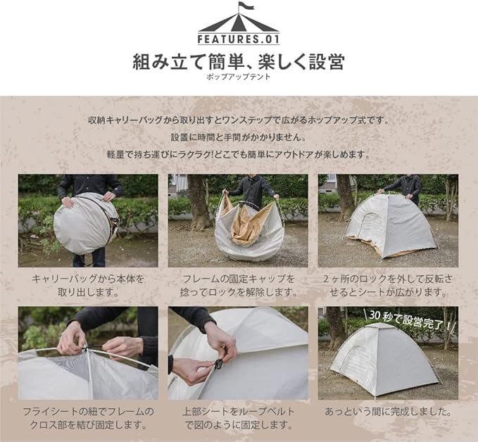 【ワイド2人用テント / 防災テントとしても活躍】ポップアップテント テント ワンタッチテント サンシェード ワンタッチ キャンプ用テント 紫外線対策 高耐水 持ち運び便利 軽量 通気 幅200 高さ120cm アウトドア キャンプ用品 防災 グッズ テント 収納バック付き ソロキャンプ 2人用 sl-zp150