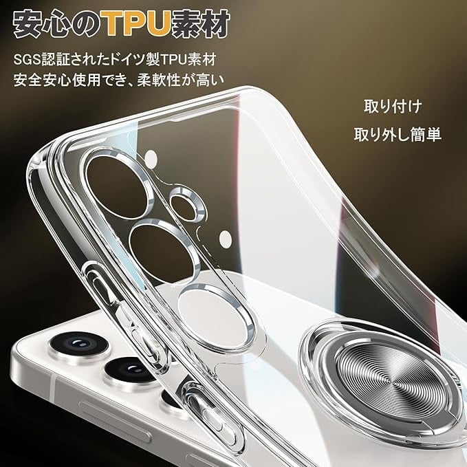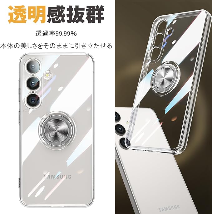 Galaxy S24 用 ケース クリア リング付き Samsung ギャラクシー S24 / SC-51E / SCG25 カバー 透明 おしゃれ OURJOY スマホケース メッキ加工 ソフトケース 耐衝撃 軽量 薄型 ストラップホール付き スタンド機能 車載ホルダー対応 携帯ケース・クリア | etshop