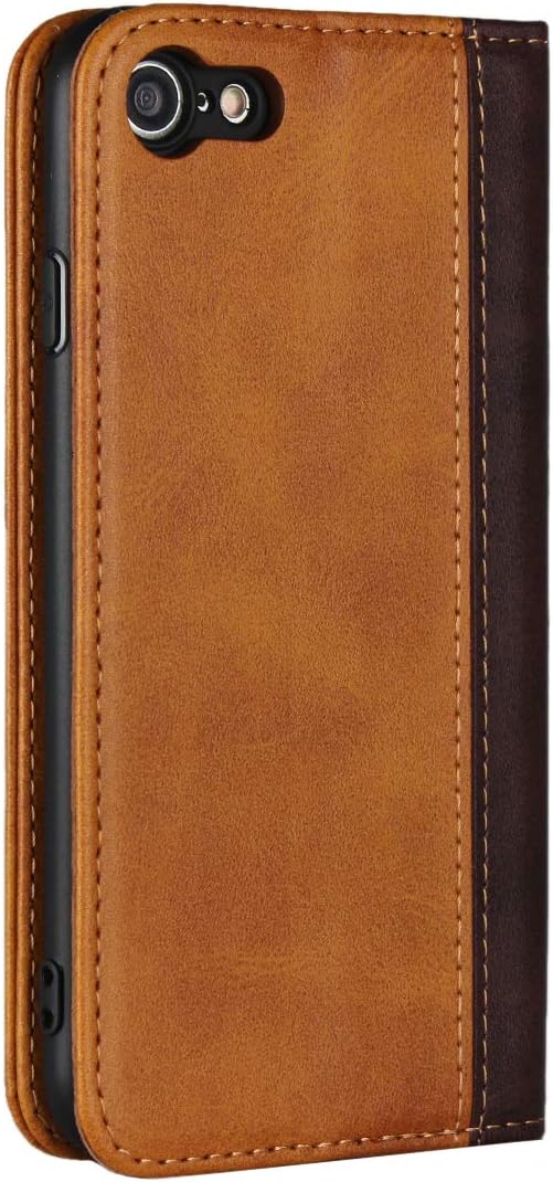 iPhone 7/8/SE 第2世代 ケース 手帳型 iphone 7 カバー 手帳型ケース Zouzt 合成皮革 財布型 カード収納 マグネット ベルトなし スタンド 4色 イエロー+ブラウン | etshop
