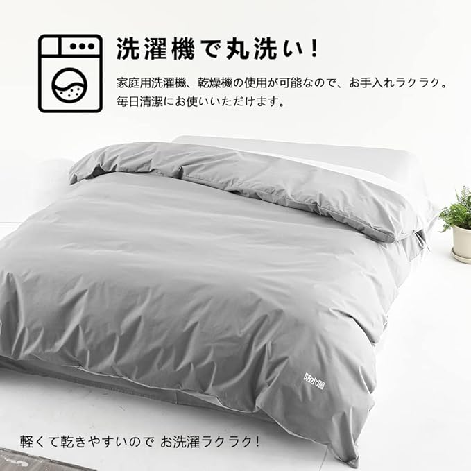 防水 掛け布団カバー ダブル 防水カバー 掛けカバー 掛布団カバー 介護カバー 190*210cm 片側防水 吸湿速乾 軽量 ベビー 赤ちゃん 高齢者用 おねしょ対策 おしっこ対策 グレー